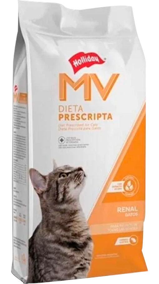 Dieta indicada para gatos con: Tratamiento de patologías renales por lesiones anatómicas o funcionales. Riñones poliquísticos. Tumores reales (linfomas). Pielonefritis (consecuencia de cistitis infecciosas). Glomerulonefritis. Encefalopatía hepática.