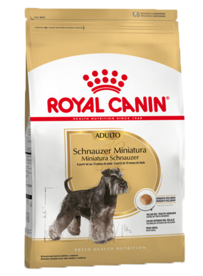 Contiene una exclusiva croqueta desarrollada para adaptarse perfectamente a la mandíbula del perro adulto de esta raza. Su fórmula posee una combinación de nutrientes y EPA/DHA que ayuda a promover una piel saludable, e incluye aminoácidos específicos para ayudar a mantener el color natural del pelaje. Además, ayuda a mantener el peso ideal del Schnauzer Miniatura.